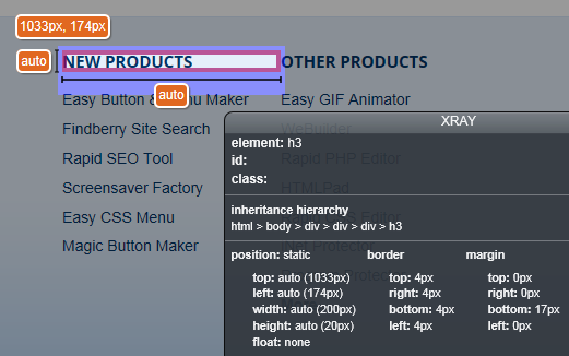 Klicken Sie auf ein beliebiges Element Ihrer Webseite und X-Ray zeigt Ihnen, welche Styles hier angewendet werden. Sie aktivieren X-Ray in der Vorschauansicht aus der Vorschau-Symbolleiste.
