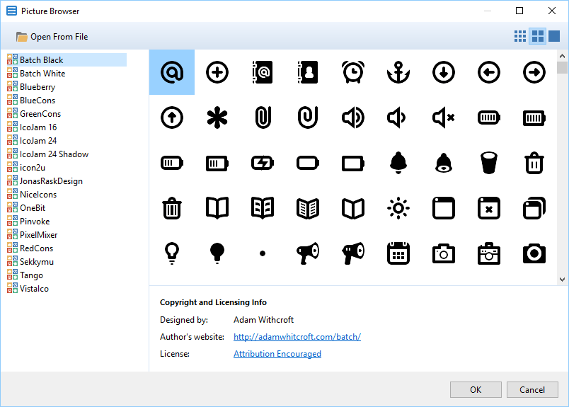 Vous pouvez facilement ajouter des icônes à vos boutons et menus. Divers formats d'icônes sont pris en charge. Des centaines d'icônes gratuites sont incluses.