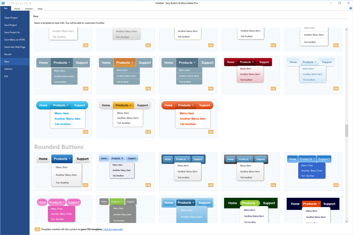 Sélectionnez parmi des centaines de modèles de boutons. Chaque modèle de bouton peut être davantage ajusté et personnalisé pour obtenir la nuance ou la luminosité souhaitée. Note : la capture d'écran de reflète pas la vraie qualité d'image du bouton.