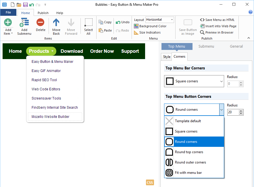 You can fine tune any template or even create your own design from scratch. You can change spacing and padding, colors and corner properties. You can also add various effects.