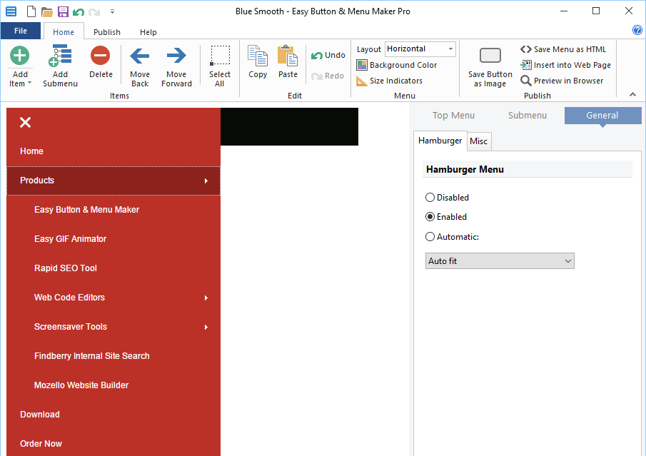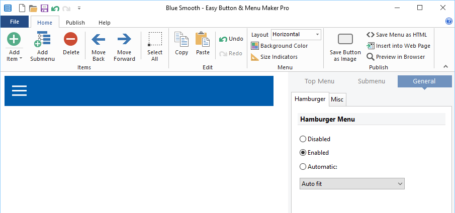 Create compact, minimalist hamburger menus that can adapt to screen size.